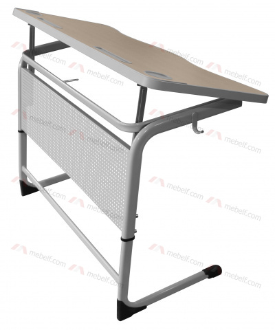 Школьный двухместный стол ШСТ66, с наклонной столешницей из МДФ с литой бесшовной кромкой, на плоскоовальной трубе, экран перфорация колокольчик